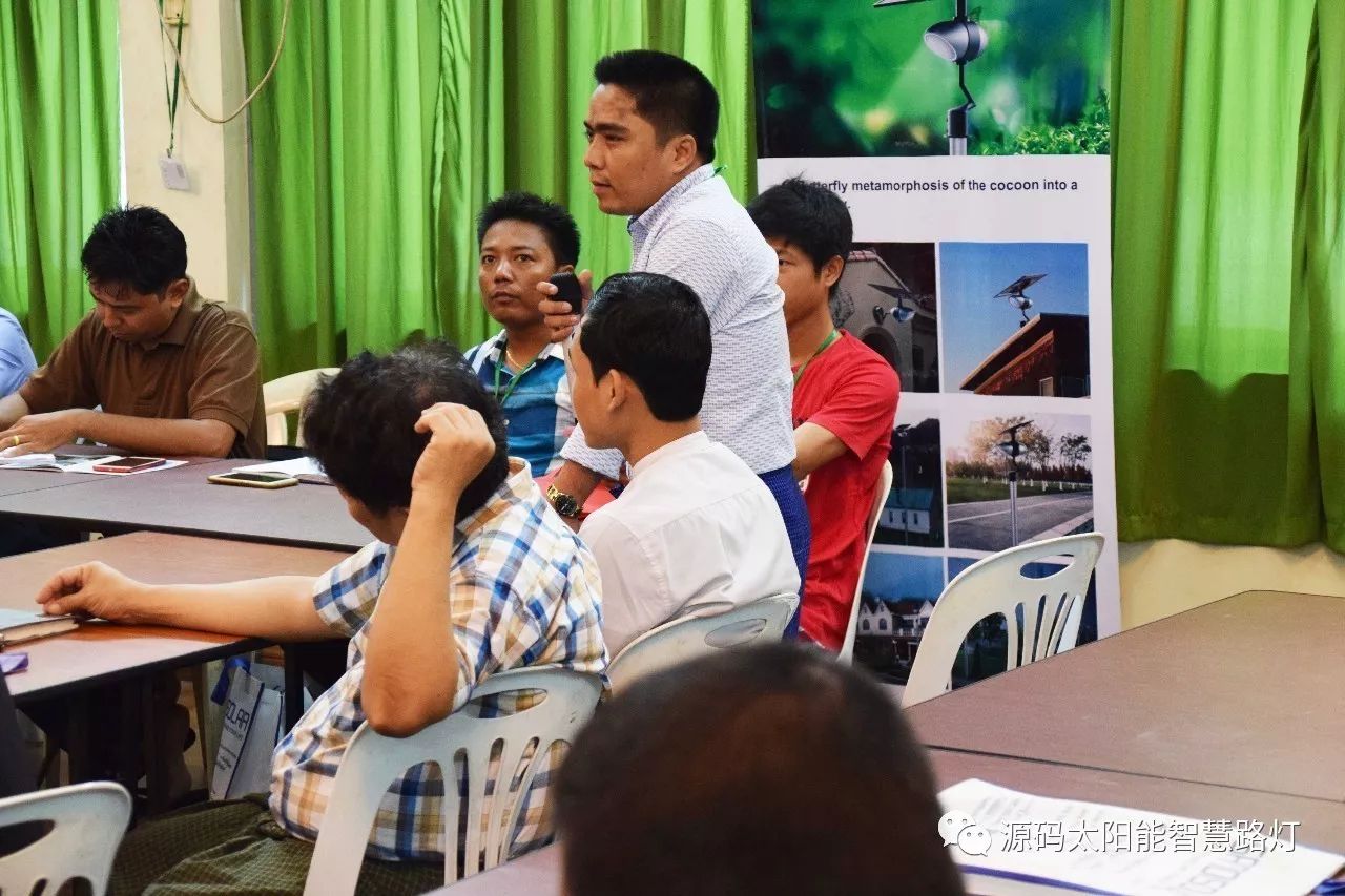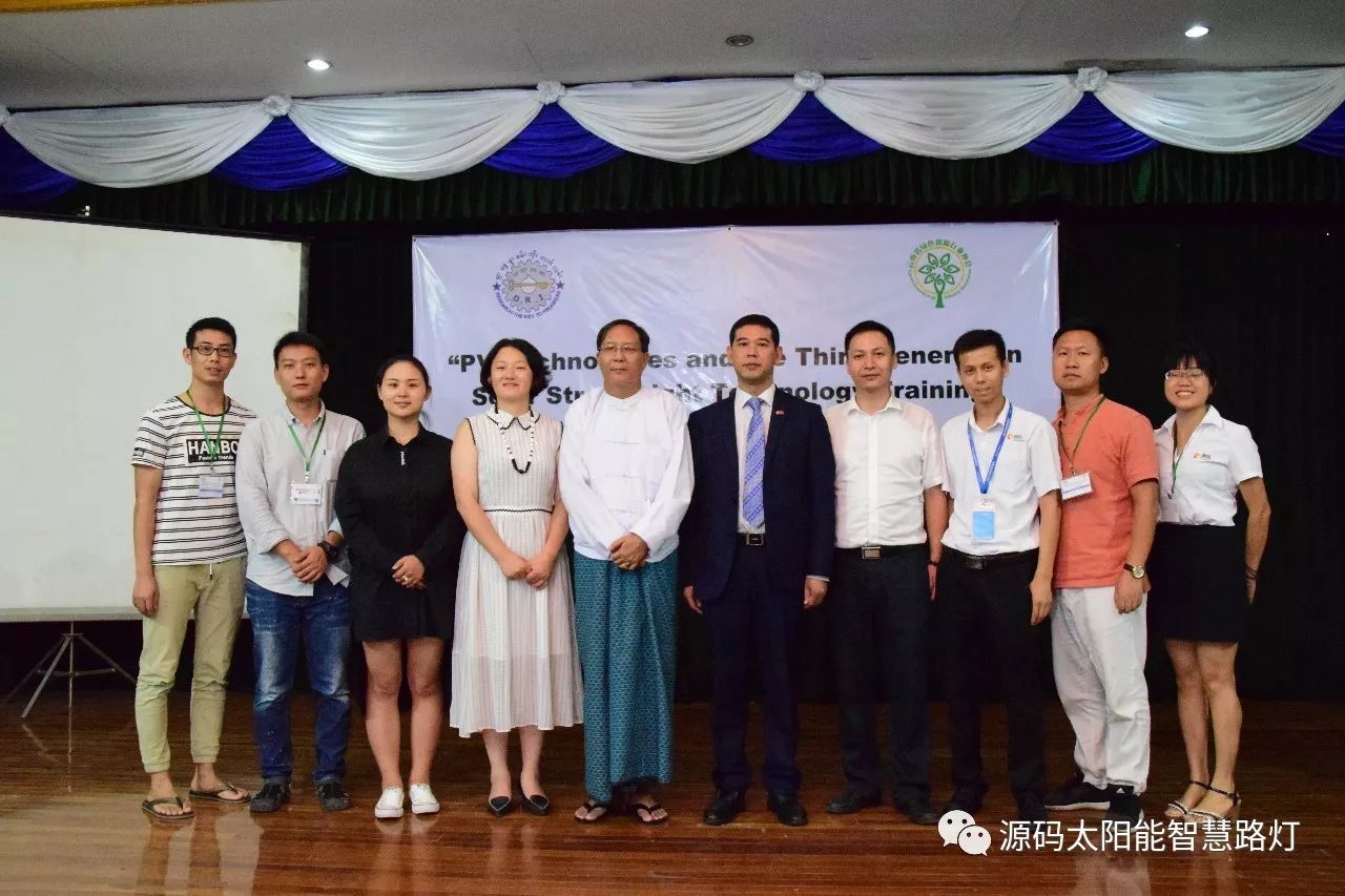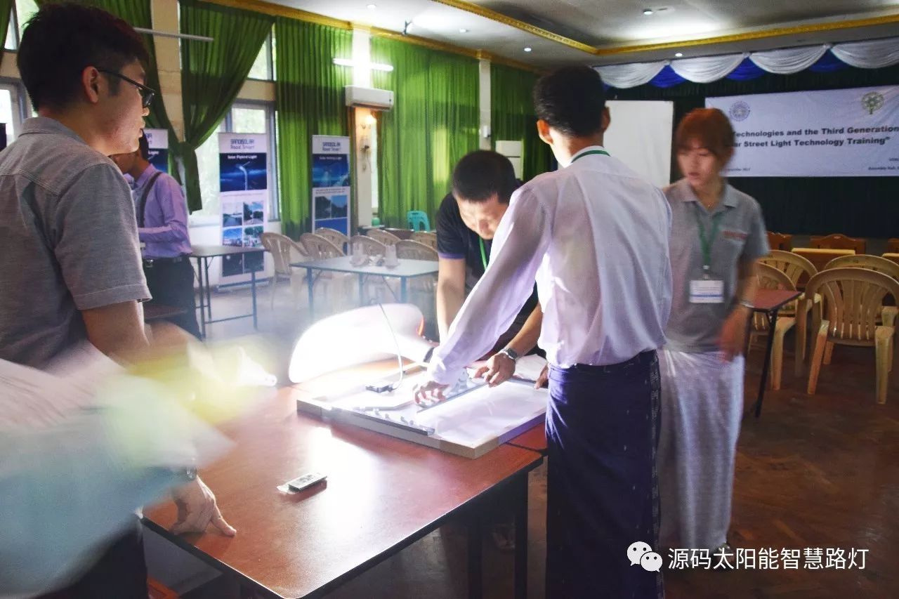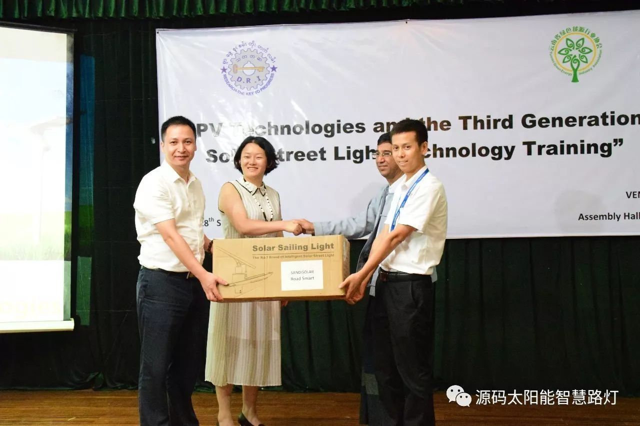 在培訓會議后,大家對此次的培訓綜合內容及取得的效果進行了深入研討,參與此次培訓的能源部、政府部門的相關人員以及大學教授、企業代表都對此次培訓會的效果表示滿意,也希望以后能有更多的類似的培訓會,源碼也希望在以后的培訓中能夠給他們帶來更好的效果。研討會后,中國駐緬甸大使館領導對本次會議作了總結:對本次培訓會議的培訓方云南省綠色能源行業協會以及源碼太陽能智慧路燈表示感謝,表示此次會議對雙方的技術交流學習以及中緬兩國友誼的加深都取到了十分良好的效果。接著緬甸教育部科技司司長則親自向所有通過考試的學員頒發了證書,在頒獎過程中,源碼也向緬甸教育部科技司捐贈了兩套太陽能智慧路燈。