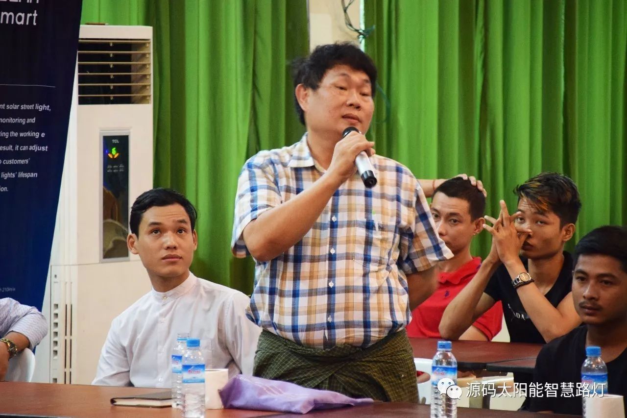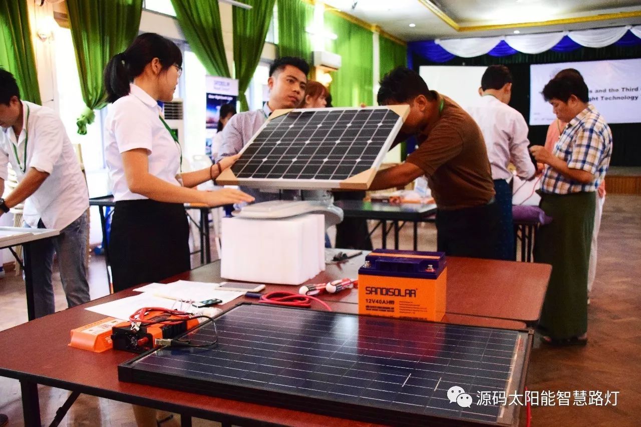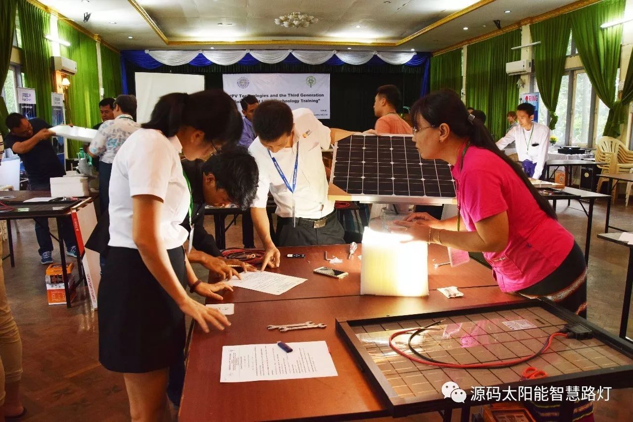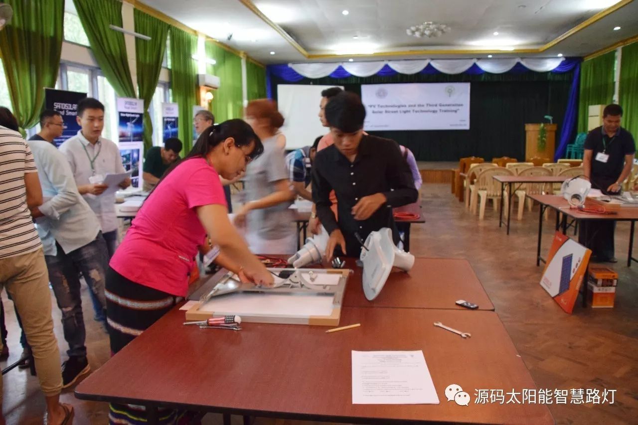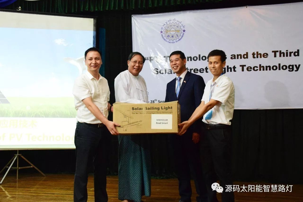 在培訓會議后,大家對此次的培訓綜合內容及取得的效果進行了深入研討,參與此次培訓的能源部、政府部門的相關人員以及大學教授、企業代表都對此次培訓會的效果表示滿意,也希望以后能有更多的類似的培訓會,源碼也希望在以后的培訓中能夠給他們帶來更好的效果。研討會后,中國駐緬甸大使館領導對本次會議作了總結:對本次培訓會議的培訓方云南省綠色能源行業協會以及源碼太陽能智慧路燈表示感謝,表示此次會議對雙方的技術交流學習以及中緬兩國友誼的加深都取到了十分良好的效果。接著緬甸教育部科技司司長則親自向所有通過考試的學員頒發了證書,在頒獎過程中,源碼也向緬甸教育部科技司捐贈了兩套太陽能智慧路燈。