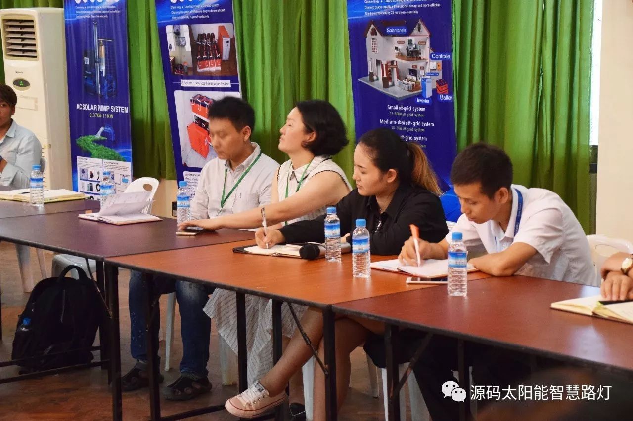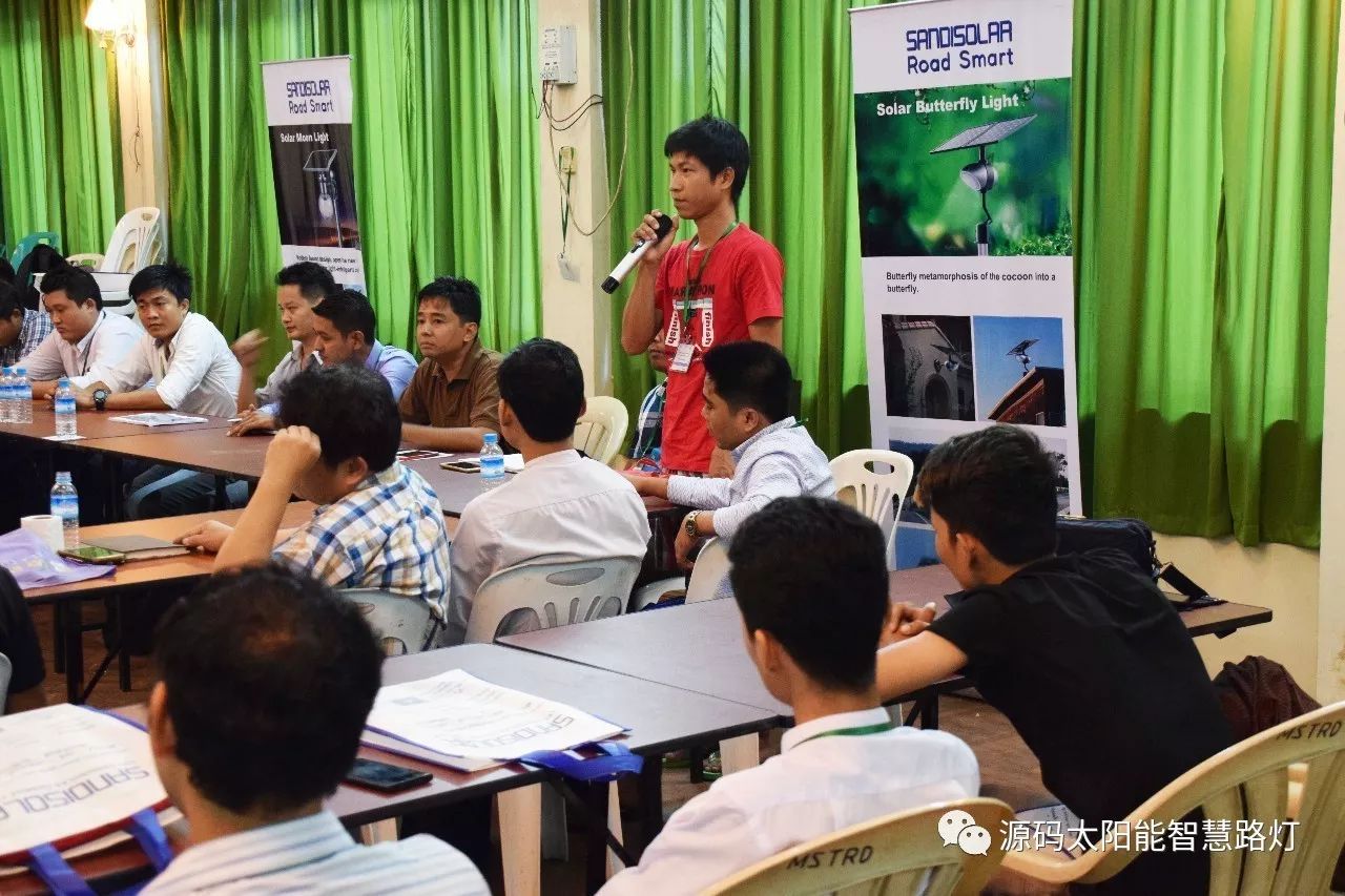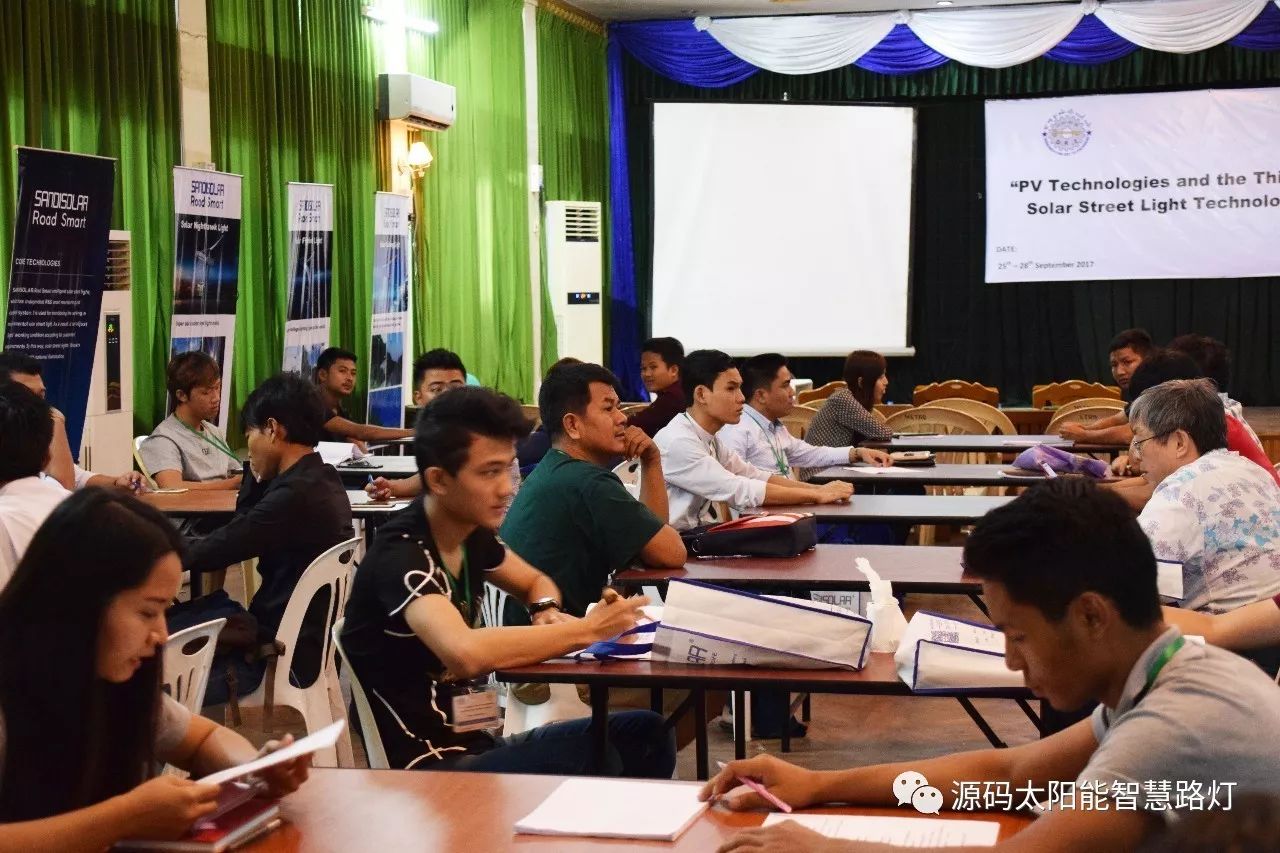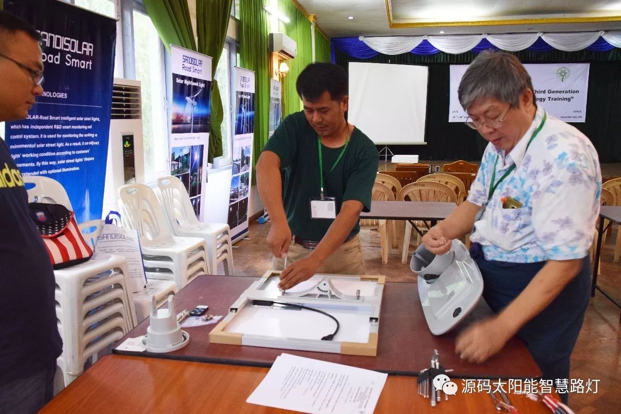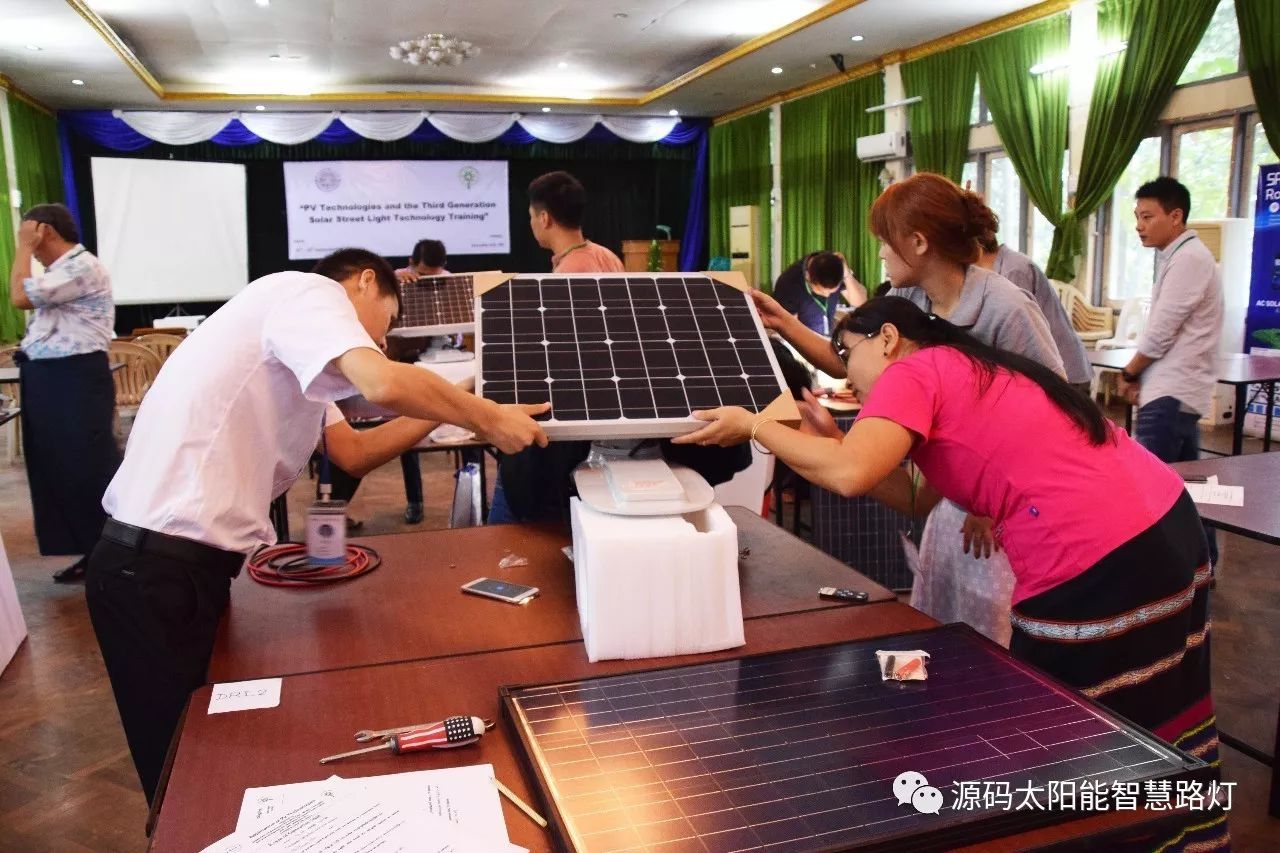 在培訓會議后,大家對此次的培訓綜合內容及取得的效果進行了深入研討,參與此次培訓的能源部、政府部門的相關人員以及大學教授、企業代表都對此次培訓會的效果表示滿意,也希望以后能有更多的類似的培訓會,源碼也希望在以后的培訓中能夠給他們帶來更好的效果。研討會后,中國駐緬甸大使館領導對本次會議作了總結:對本次培訓會議的培訓方云南省綠色能源行業協會以及源碼太陽能智慧路燈表示感謝,表示此次會議對雙方的技術交流學習以及中緬兩國友誼的加深都取到了十分良好的效果。接著緬甸教育部科技司司長則親自向所有通過考試的學員頒發了證書,在頒獎過程中,源碼也向緬甸教育部科技司捐贈了兩套太陽能智慧路燈。