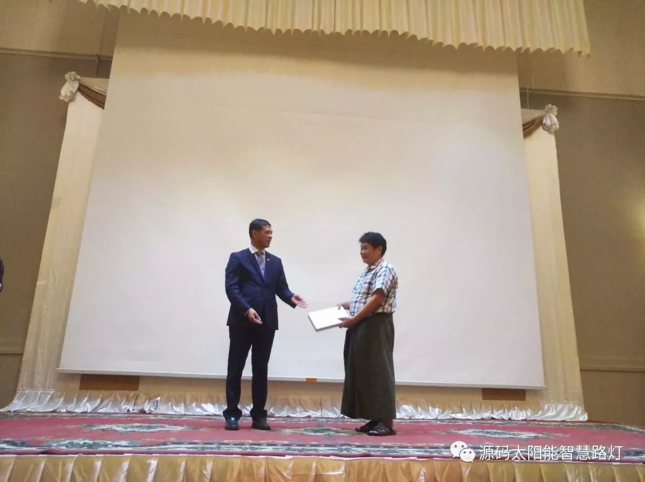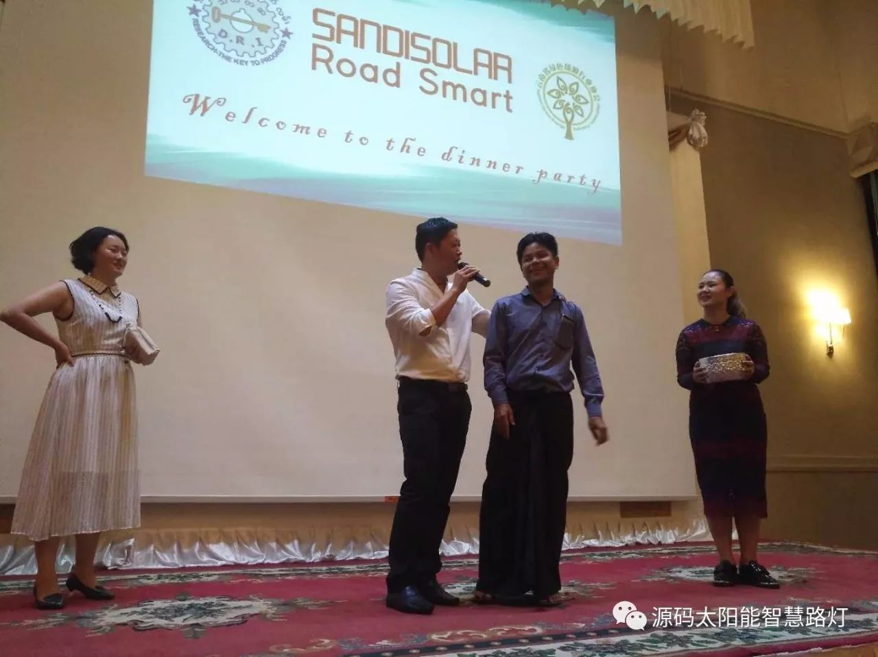 在答謝晚宴上,中國駐緬甸大使館領導向培訓會取得優異成績的優秀學員頒發了榮譽獎狀并給予了贊揚。同時也跟源碼進行了深度的交流,領導表示:源碼作為此次培訓會議的培訓講師,給緬甸的政府和行業人士傳遞了先進的新能源應用技術,是一件引以為榮的事情。太陽能路燈在緬甸的推廣有利于提高緬甸人民的生活品質,是一個民生工程,從國家層面或者從中國政府層面,都會大力的支持像源碼這樣的勇于走出去且具有社會責任感的新能源企業。同時,領導也給了源碼很多在緬甸推廣的一些建議。